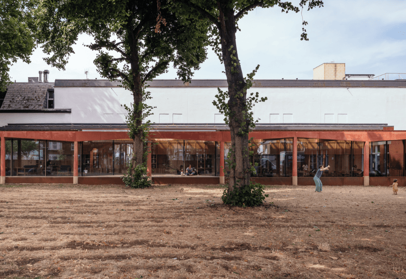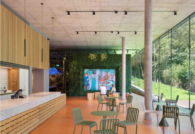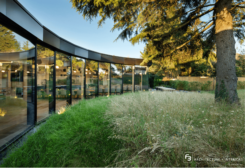 Lea Bridge Library uses structural glass to create a glass façade that slopes up the span of the extension. Curved elements of glass were also included within the façade design with slim sliding doors at either end. The timber structure meant that structural glazing was the best option for the glass façade design in order to ensure a minimal design.