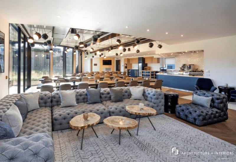 The Lodge at the Tottenham Hotspurs Training Ground is a great example of a curtain walling system to create a faceted glass façade. The Schuco façade system was used by the team at IQ to create glass walls to the communal dining and recreation areas of the sports training facility. It was the first example of the Schuco FWS 35 PD system being designed as a faceted facade with the details and engineering of this system change being created and led by the team at IQ.